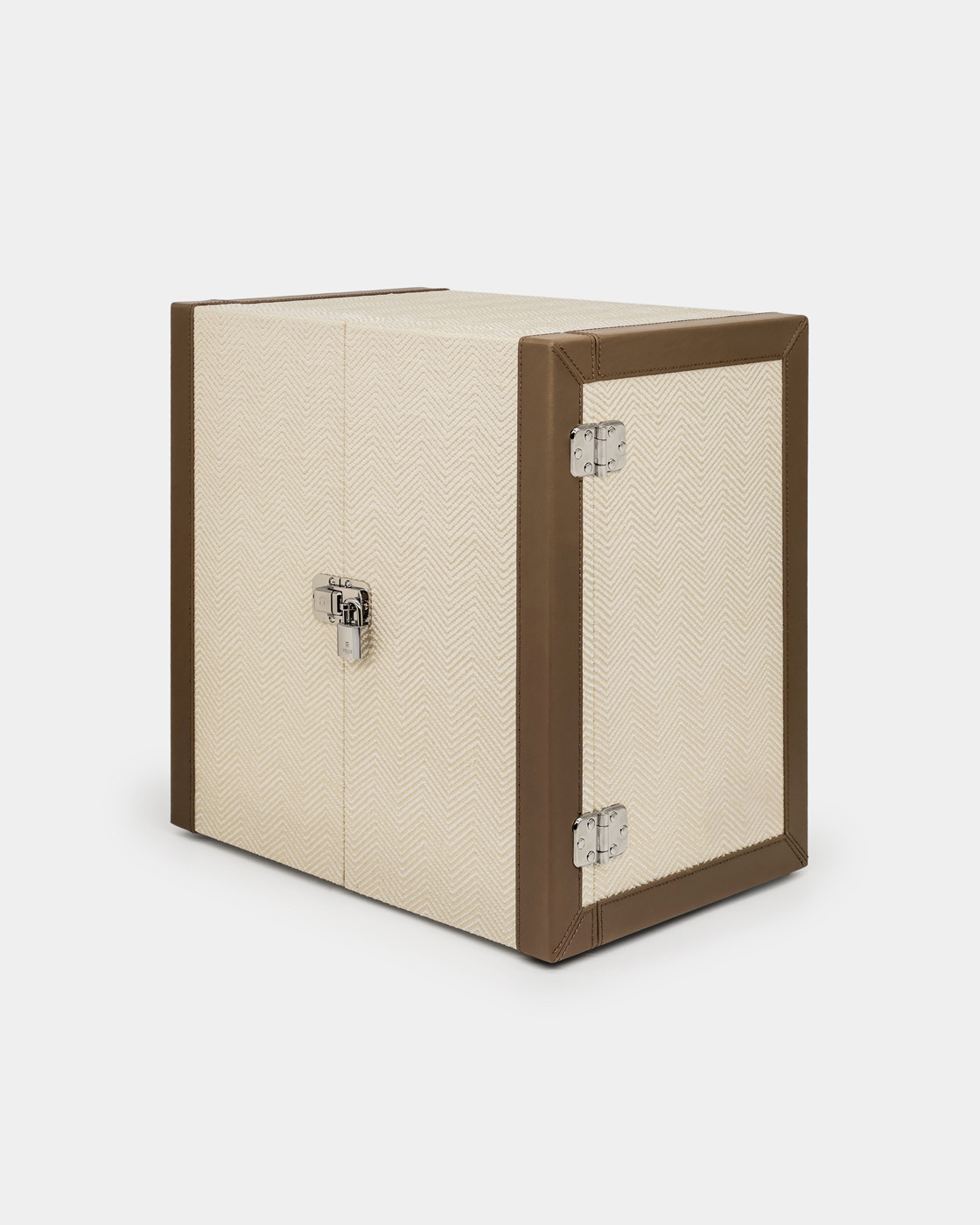 A refined expression of craftsmanship and elegance, this jewelry and watch trunk is fully wrapped in a luxurious Loro Piana Interiors fabric, celebrated for its softness, resilience, and understated sophistication.